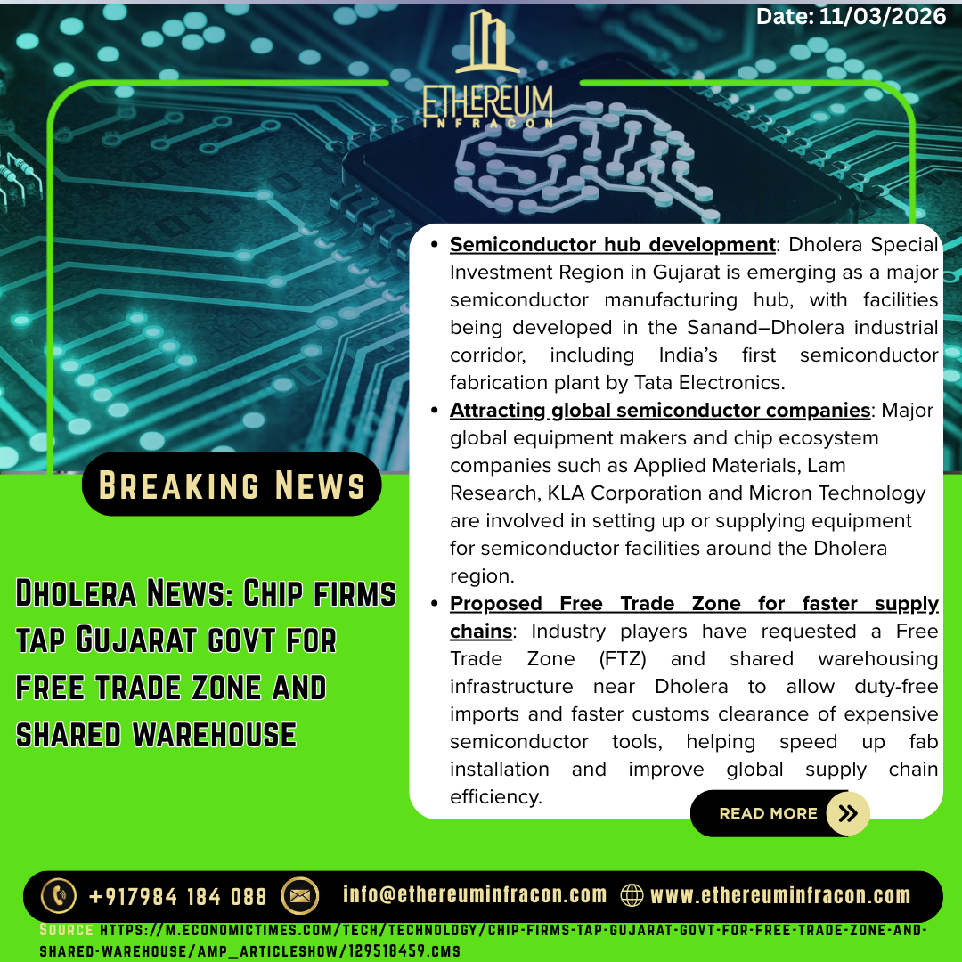 Dholera Semiconductor Hub: Global Chip Giants Seek Free Trade Zone in Gujarat
